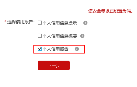 第十六步:勾选个人信用报告,用户可以根据自己的需求进行选择,选好之后点击【下一步】,如果不知道该怎么选,就直接全部勾选。